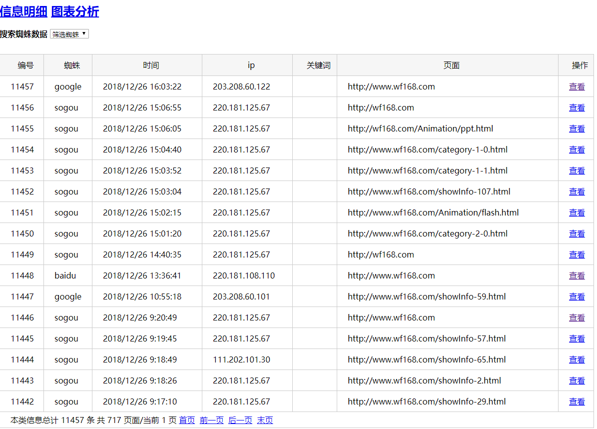 本公司開發(fā)的蜘蛛分析插件可以直接鏈系本站獲取,嵌入到網(wǎng)站就可以分析搜索蜘蛛的來訪情況,根據(jù)數(shù)據(jù)庫的內(nèi)容進行數(shù)據(jù)分析,為下一步的網(wǎng)站優(yōu)化提供參考數(shù)據(jù)。