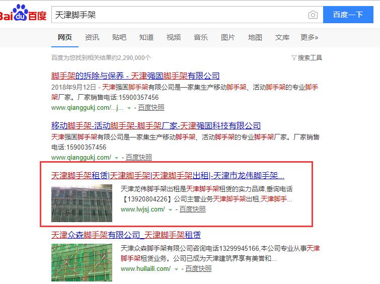 天津龍偉腳手架2012年開始托管我方進行網(wǎng)站維護、網(wǎng)站關鍵詞優(yōu)化排名服務,網(wǎng)站關鍵詞“天津腳手架、天津腳手架租賃 天津腳手架出租”等穩(wěn)定居于百度首頁。