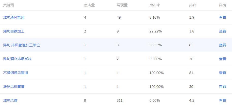 經(jīng)過三四年的網(wǎng)站運(yùn)行和維護(hù),該公司的相關(guān)關(guān)鍵詞排名理想,關(guān)鍵詞濰坊通風(fēng)管道、濰坊白鐵加工、濰坊不銹鋼廚具、濰坊不銹鋼廚房等關(guān)鍵詞排名穩(wěn)定,展現(xiàn)效果不錯。