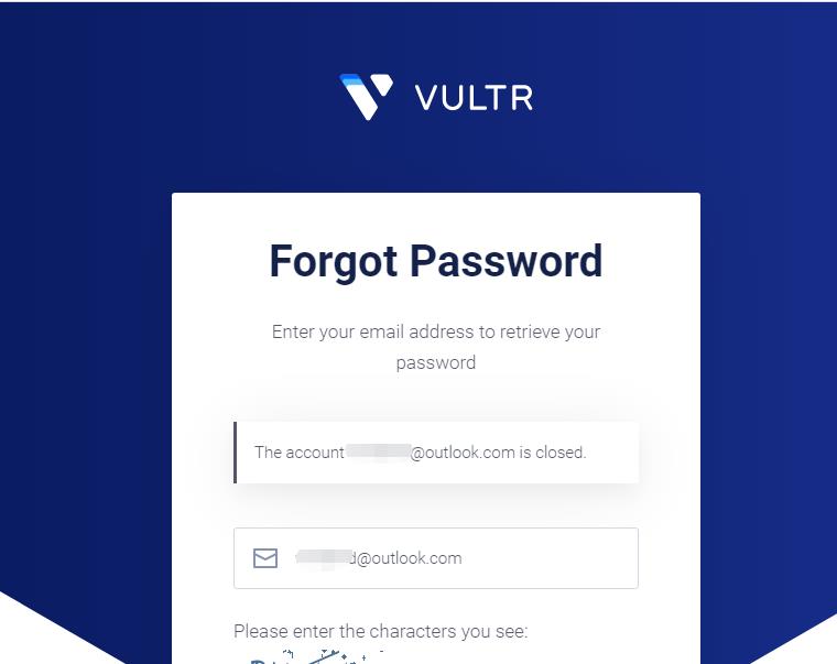 今天登陸vultr使用之前的賬號(hào)登陸,一直提示賬號(hào)和密碼錯(cuò)誤,賬號(hào)和密碼確認(rèn)是沒有錯(cuò)誤的。